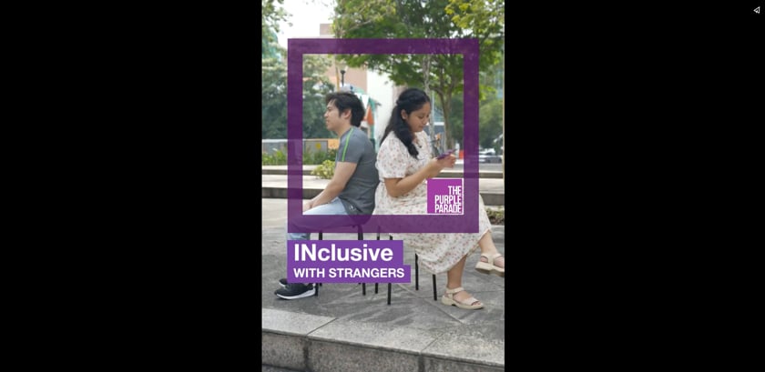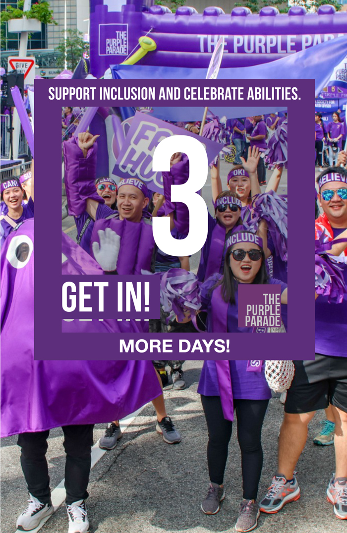 Our campaign to create greater awareness for Singapore’s largest movement for inclusivity took on a refreshing out-of-the-box twist by inviting people to ‘GET-IN’ on the action together. This was achieved by creating a vibrant purple square frame, where the four sides not only symbolise their solidarity with PWDs, but doubles as an open invitation to join the movement.